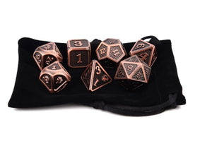 Shiny Bronze Dragon Scale Metal Dice Set 7 Piece with Black Dice Pouch